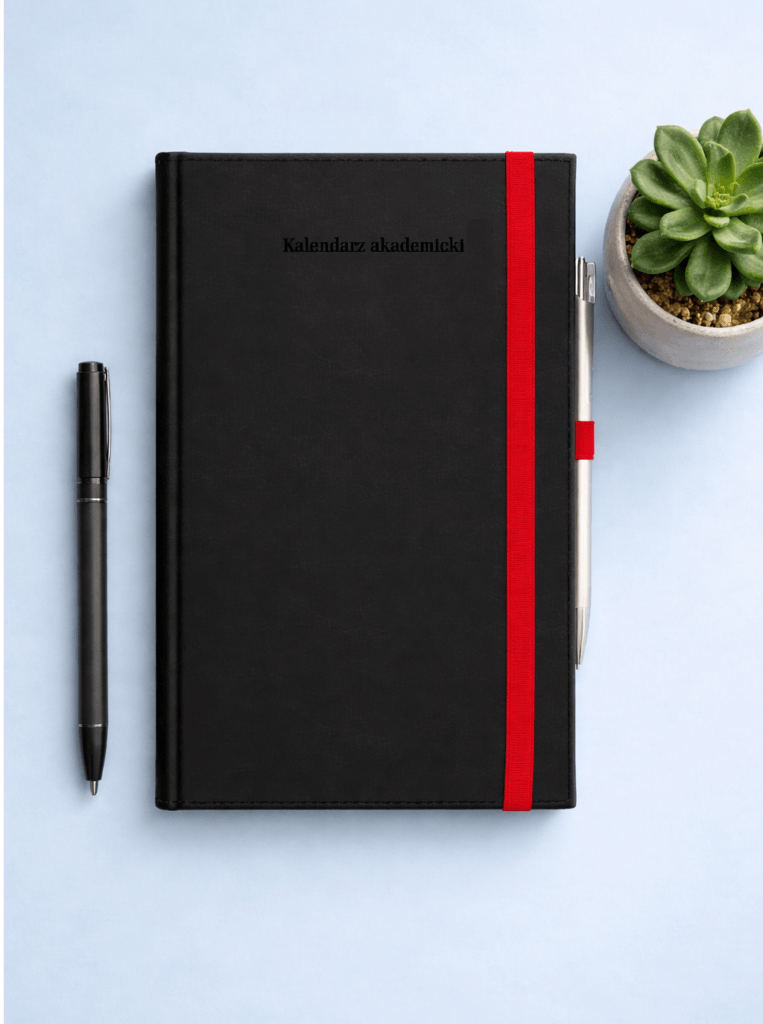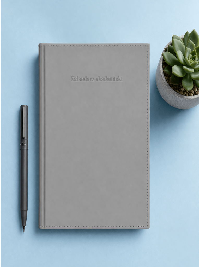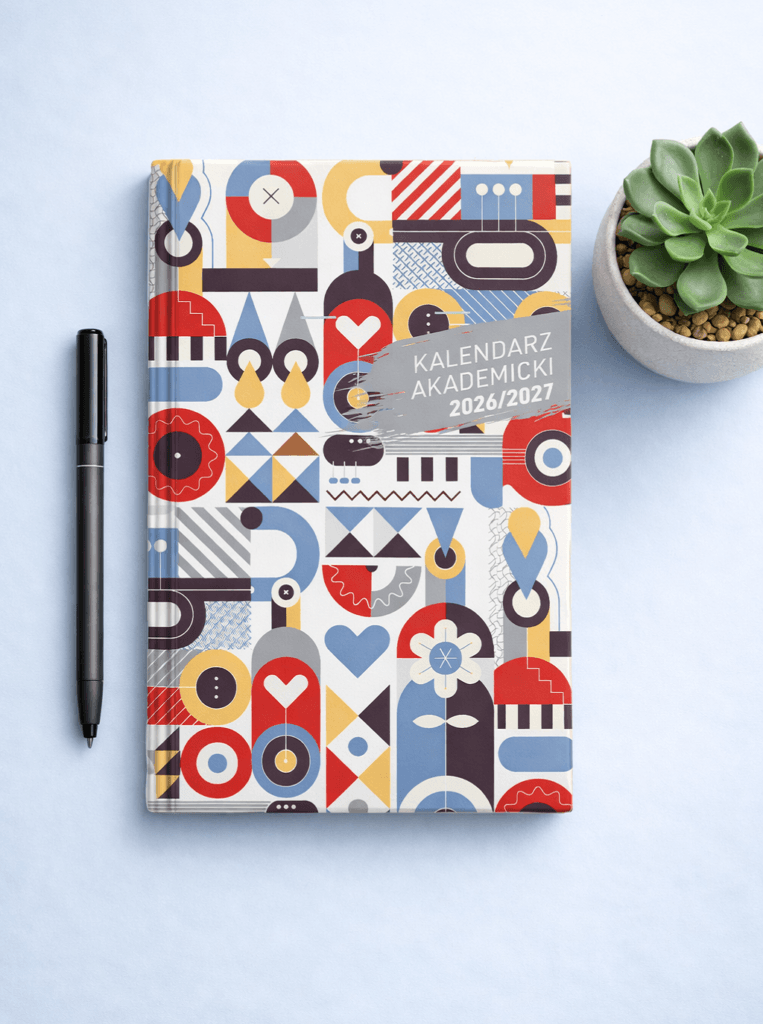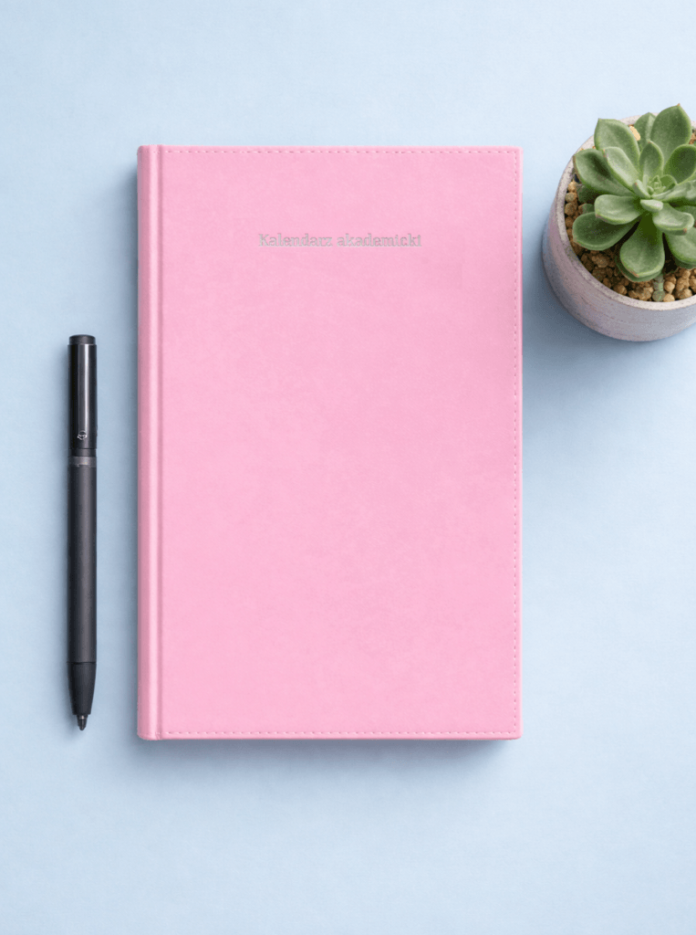 Podręczny kalendarz A5 tygodniowy w oprawie o podłożu papierowym. Dużo miejsca na notatki. Rozbudowana część informacyjna wzbogacona o tabele przydatne w planowaniu roku akademickiego.