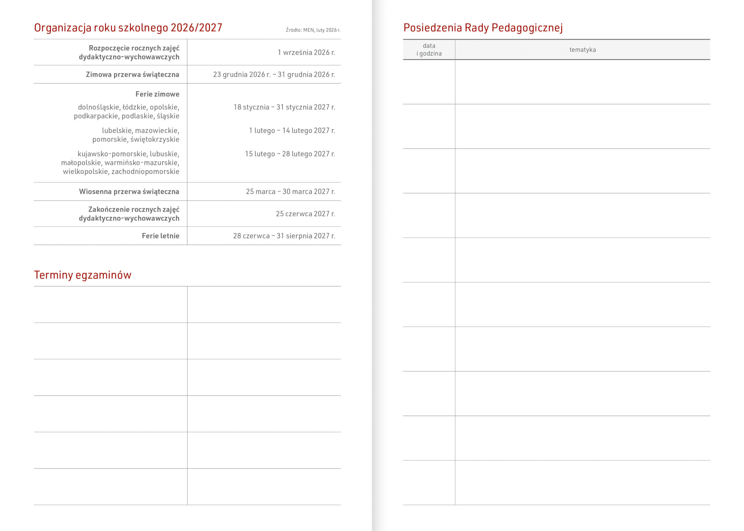 • organizacja roku szkolnego 2026/2027