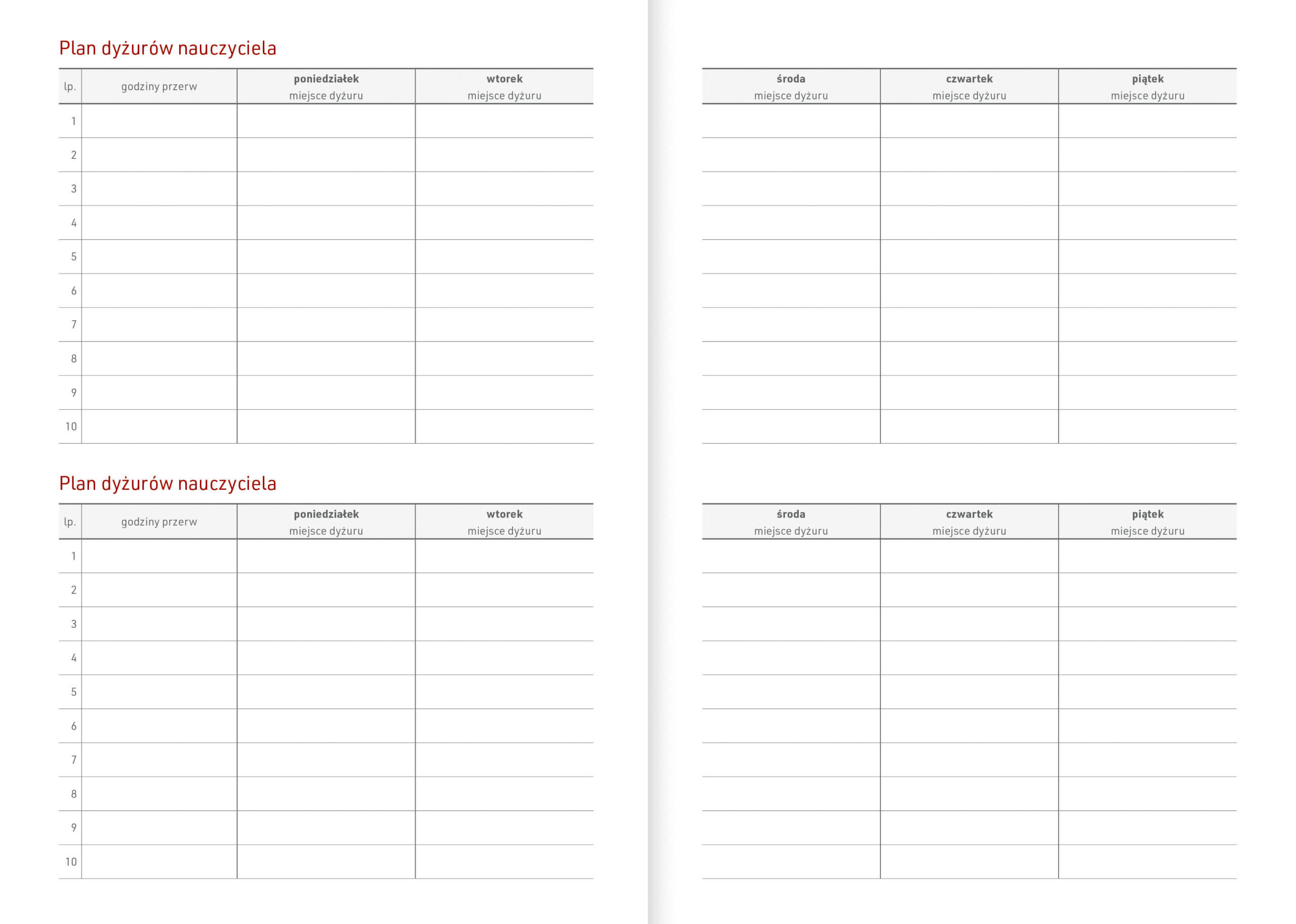 • plan dyżurów nauczyciela