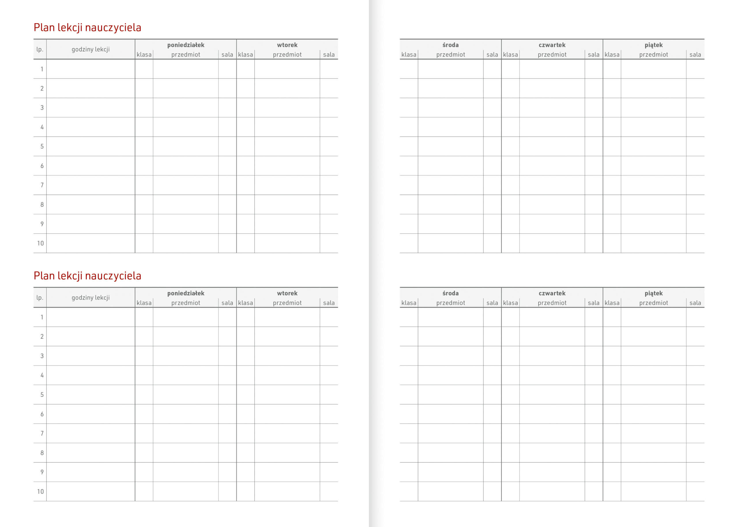 • plan lekcji nauczyciela